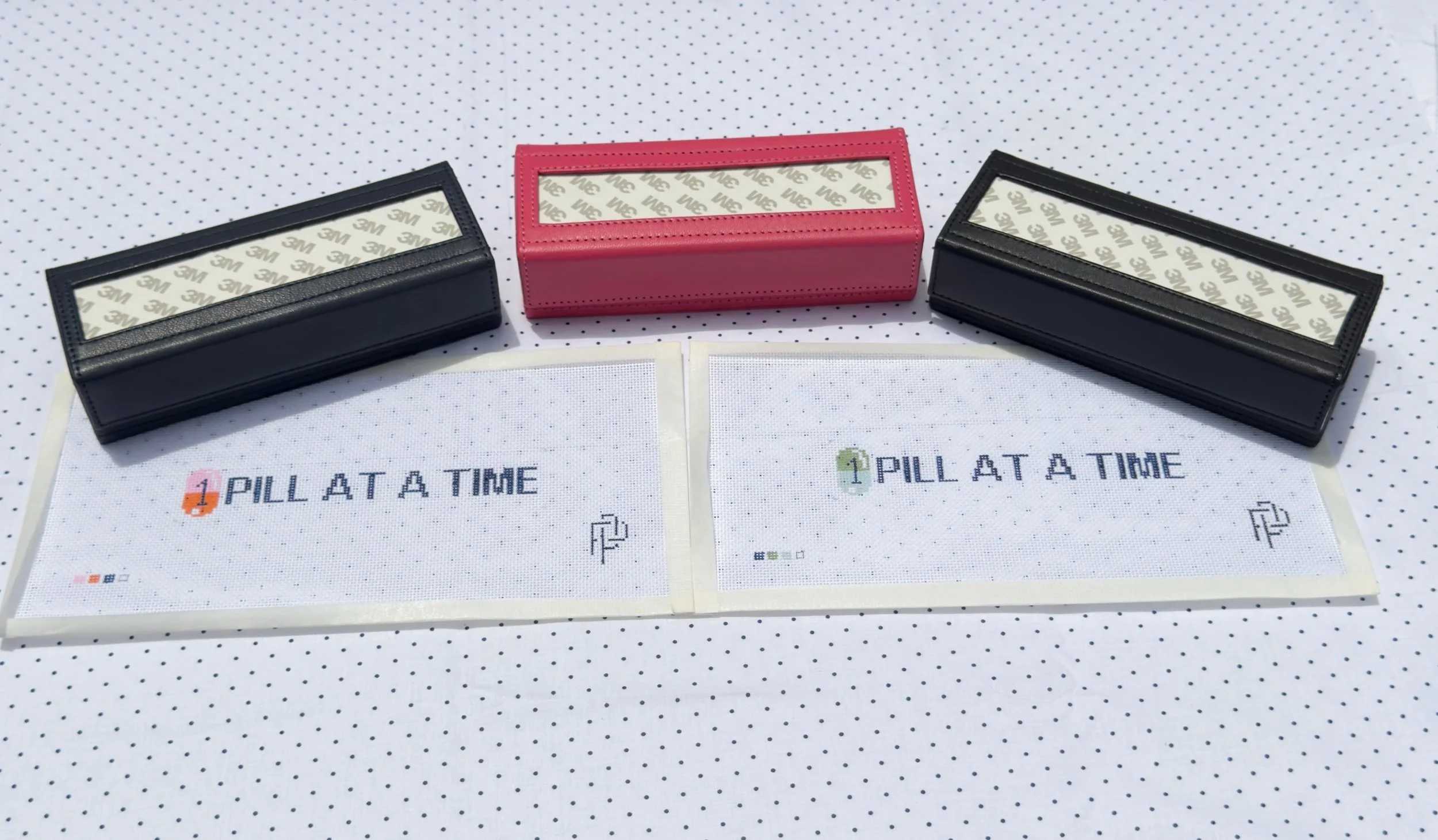 A stitched reminder to take it one pill at a time. This 1.5 x 6.75” canvas is designed to slide right into our leather pill boxes for a thoughtful, personalized touch. It also stands beautifully on its own—perfect as a bookmark, patch, or a gift for someone navigating their own health journey.